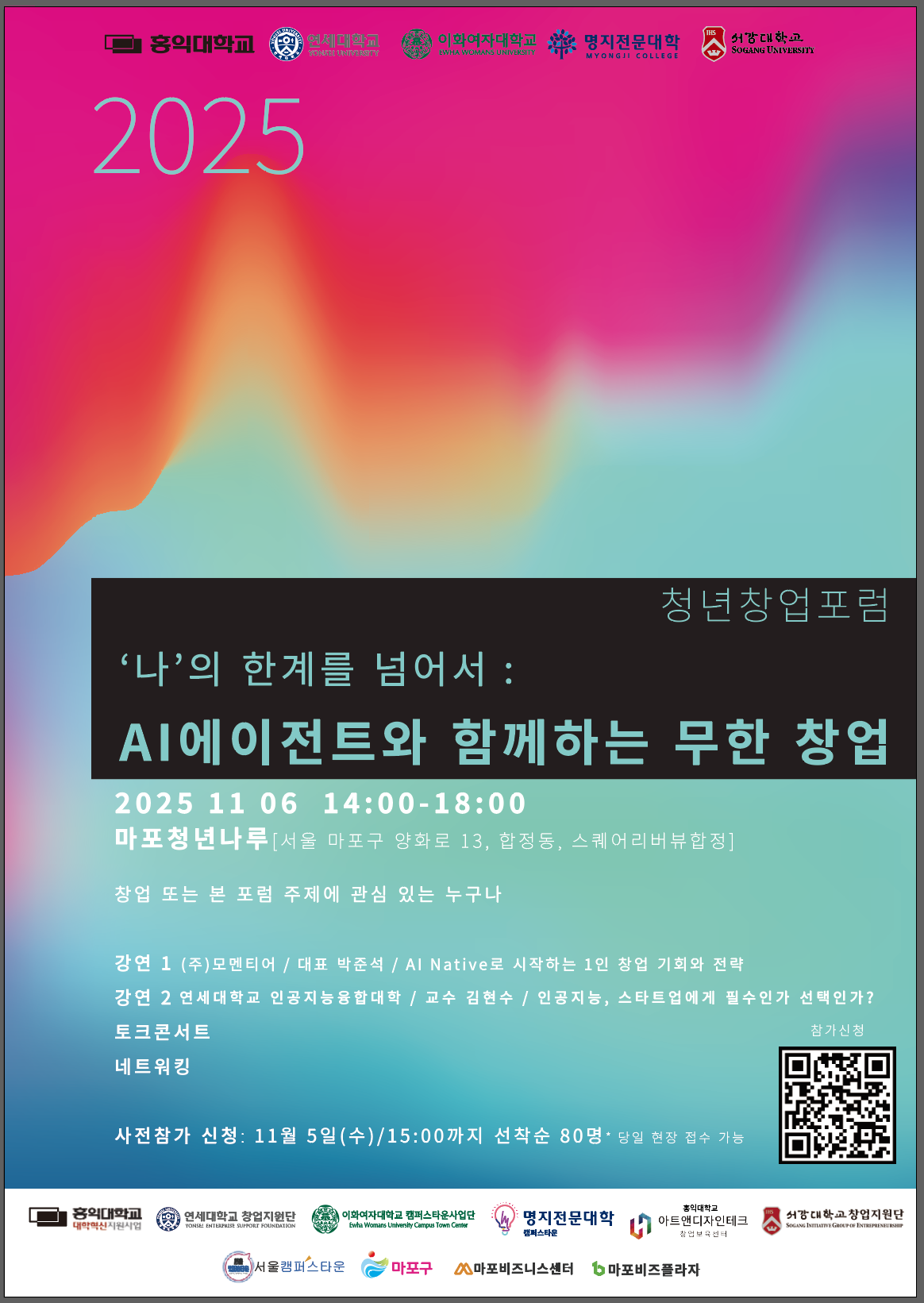 서울시와 5개 대학이 함께 마련한 자리이므로 선착순 조기 마감이 예상되오니 빠른 신청부탁드립니다.